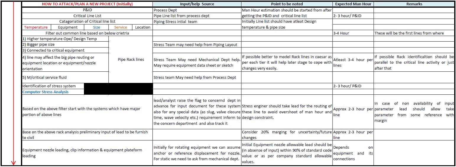 This is my pure thought/suggestion for a Stress Lead engineer for a starting a new project. As per my thinking a piping stress lead engineer (with help of layout lead engineer and whole team) should take lead for proper planning for piping at the starting. By this way we can avoid a lot of mesh, overshooting of man hour and deviation from standard at the later stage of project.