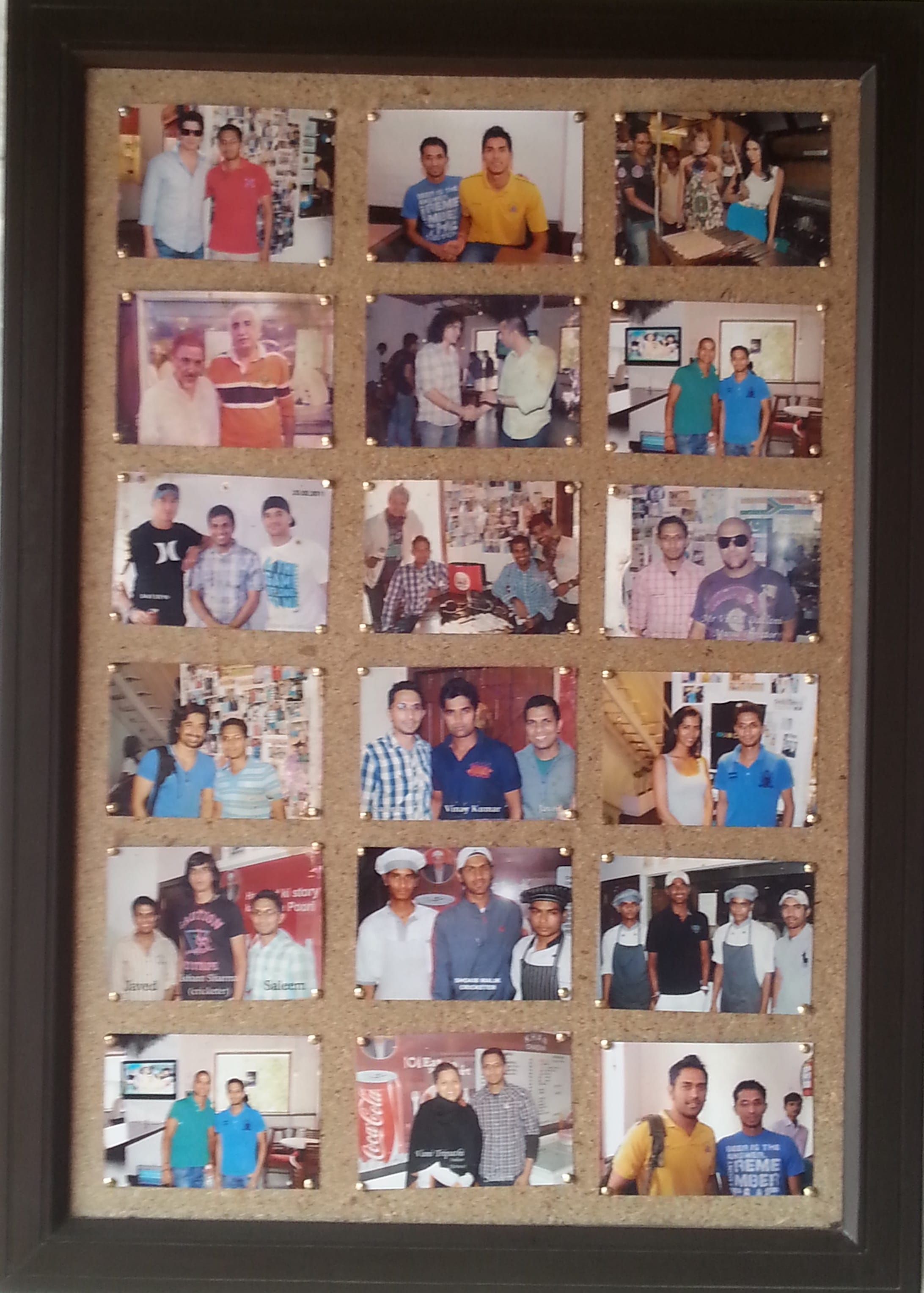 Also there are cutout of some famous newspaper and magazine framed and hanging at wall.